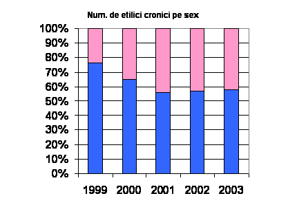 Rezultatele sunt similare celor obfinute de T.Banciu, care obtine raportul pe sexe in populatia de mari consumatori de etanol: barbati/femei= 9/1, fata de un raport barbati/femei= 2/1 in populatia de consumatori ocazionali de etanol.