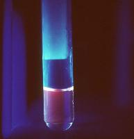 Foto 7 : Porfirie cutanata tardiva. Fluorescenta urinii la lampa Wood. |