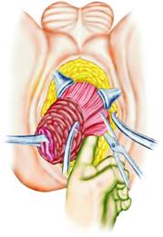 Dupa ce se stabileste ca rectul poate fi mobilizat, se trece la exereza propriu-zisa.