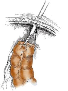 Fig. 18 - Realizarea colostomiei terminale; puncte de sutura colo-cutanate