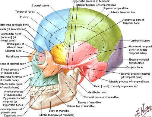 Intre aceste oase exista o serie de articulatii fixe numite suturi. Intre osul frontal si