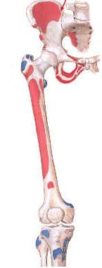 o coapsa, reprezentata prin femur. In zona articulatiei genunchiului se afla un os mic, rotula