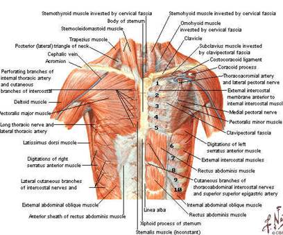 - muschii toracelui: - marele pectoral - pleaca de la clavicula, stern, primele 5-6 coaste