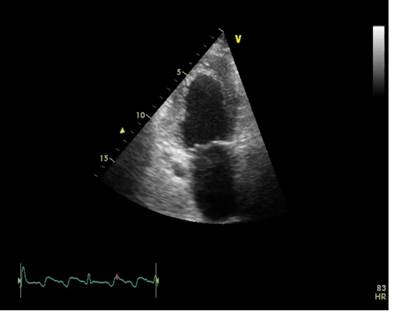 Fig. 3 Sectiune apicala doua camere, hipokinezie pereti VS anterior si inferior. Fisier hera 32 movie