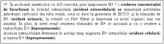 dar in acidoza tubulara distala, cand urina este alcalina se ajunge frecvent la formarea de calculi sau la nefrocalcinoza.