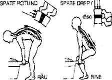 Practica arata ca persoanele care sufera de afectiuni ale discurilor intervertebrale sunt adesea cuprinse de dureri violente si atinse chiar de paralizie atunci cand incearca sa ridice greutati. Aceste accidente acute nu sunt altceva decat supraincarcari subite a discurilor intervertebrale. Miscarile sau metodele de munca incorecte pot mari considerabil riscurile.