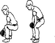 f) pozitia de pornire cu genunchii profund flexati si cu trunchiul cat mai drept posibil, este mai buna decat aceea cu genunchii intinsi si spatele flexat (fig.).
