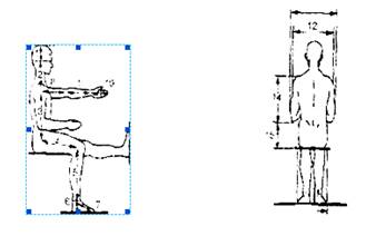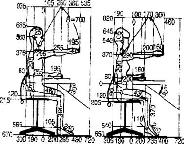 In pozitia sezand dimensiunile antropometrice sunt: inaltimea fata de sol, distanta de la ochi la sol, inaltimea scaunului de lucru, inaltimea umar-scaun, inaltimea in pozitie sezanda, distanta umar-cot, distanta cot-scaun, distan a bi-epicondilara (la coate), distanta bi-epicondilara (la genunchi), diametru bi- trochanterian, lungimea antebratului, distanta fesa-genunchi, distanta dintre fesa si partea superioara a articulatiei genunchiului (popliteala), inaltimea spatiului popliteal, inaltimea genunchiului.