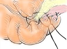 Fig. 8 - Stanga: Ligatura apendicelui dupa "strivirea" bazei sale;