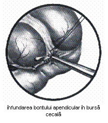 - infundarea bontului apendicular in bursa cecala (cu conditia ca cecul sa nu fie foarte infiltrat sau cartonos) si eventual mezoplastie;