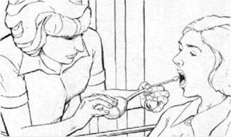 se scoate tamponul, se inchide narina, se apleaca capul usor inainte si i se solicita sa aspire medicamentul treptat pentru a nu il ingiti.