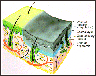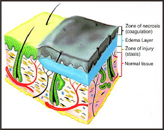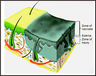 modificari locale in structura cu care a venit in contact direct un raspuns general, direct proportional cu leziunea locala. In leziunile minore raspunsul general al organismului este fie absent, fie foarte slab sistematizat. Practic, numai arsurile care depasesc in suprafata 15% sunt capabile a declansa fenomene reactionale generale.