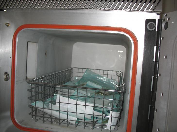 - obiectele de sticla se aseaza pe etajere, fara sa fie astupate (sau astupate cu dopuri de vata) pentru ca si suprafetele interioare sa se gaseasca la temperatura uniforma;