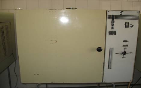 - aparatul utilizat este cuptorul cu aer cald numit pupinel (dupa numele inventatorului, Poupinel); in dotarea spitalelor noastre se gasesc cuptoare tip I.T.M. Bucuresti (fig. 1);