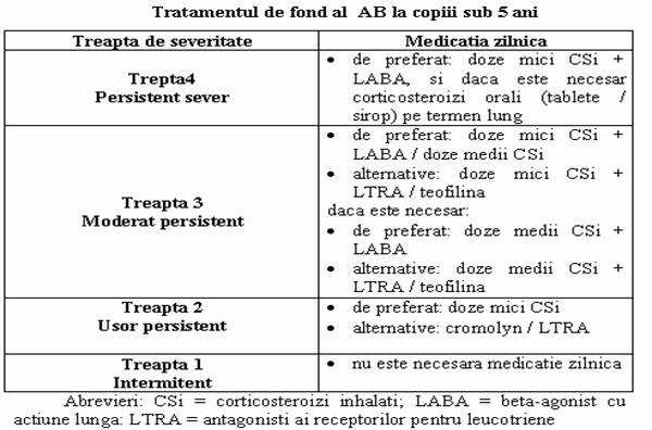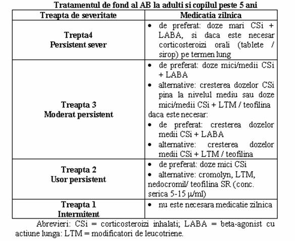 - terapie asociata dozelor mari de CSi in formele severe ale AB persistent