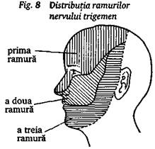 Dupa cum o arata si denumirea sa, nervul trigemen, cel mai gros nerv senzorial care porneste din creier, are trei ramuri (fig. 8).
