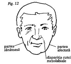 Nervul facial este un nerv motor care controleaza miscarea muschilor inimicii. Paralizia provoaca anumite simptome pe o parte a fetei. Desi nu este dureroasa, boala duce la deformarea faciala. De exemplu, daca paralizia afecteaza muschiul orbicular al gurii, un colt al acesteia va cadea in jos, tragand dupa sine partea normala, ducand la disparitia cutei nazolabiale (cuta de la nas la buza) (fig. 12). Daca paralizia apare la muschiul orbicular al ochiului, ochiul afectat nu se va mai inchide complet (vezi fig. 15). Paralizia de acest fel poate aparea in urma unei lovituri, din cauza gripei, a obstructiei vasculare, a racelii, a unei expuneri prea indelungate la aer conditionat rece etc.