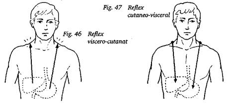 Tratamentul shiatsu si stretching-ul axate pe regiunea suprascapulara, prezentate mai sus, sunt suficient de eficiente pentru tratarea majoritatii cazurilor de intepenire a umerilor provocate in general de oboseala. Exista insa si cazuri cand reflexele patologice create de dereglari organice stau la baza acestor simptome. De exemplu, dereglarile inimii, ale stomacului, ale pancreasului si ale rinichiului stang provoaca intepenirea regiunii suprascapulare stangi. Dereglarile ficatului, ale vezicii biliare si ale rinichiului drept produc intepenire in regiunea suprascapulara dreapta (fig. 46 si 47).