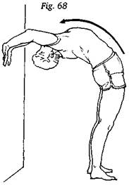Pentru stretching, plasati-va cu spatele la un perete, la o distanta cam de patruzeci de centimetri. Lasandu-va pe spate, puneti ambele palme pe perete (fig. 68). Mentineti aceasta pozitie timp de zece secunde, apoi reveniti in pozitia initiala. Repetati de trei ori. Acest exercitiu intareste muschii spatelui prin intinderea partii superioare a trunchiului si prin contractarea spatelui.