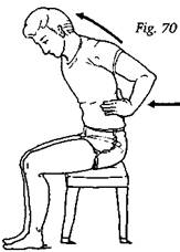 Spate plat. Punctele pentru tratamentul shiatsu sunt concentrate pe ambele parti ale coloanei, de la regiunea interscapulara pana la cea subscapulara si la cea lombara (fig. 69). Dirijati presiunea spre partea anterioara a corpului si indoiti spatele, aplecandu-va putin in fata (fig. 70). Acest exercitiu ar trebui efectuat zilnic, din pozitia in picioare, in genunchi sau asezat.
