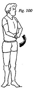 Stretching. Exercitiile se concentreaza asupra regiunii colonului sigmoid. Din pozitie verticala, puneti o palma pe colonul sigmoid, asezati mana cealalta deasupra, dupa care rasuciti corpul spre stanga (fig. 100 si 101). Ramaneti in aceasta pozitie zece secunde. Repetati de trei ori. Apoi, rasuciti corpul spre dreapta, in acelasi fel. Ramaneti zece secunde in aceasta pozitie; repetati de