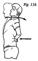 de corp. Astfel, veti avea posibilitatea de a exercita presiunea asupra locului unde sunt situati ambii rinichi (fig. 115). Apasati timp de cinci pana la opt secunde si concomitent aplecati trunchiul spre spate, folosindu-i greutatea pentru a mari presiunea si a o face sa patrunda in adancime (fig. 116). Repetati de cinci sau sase ori.