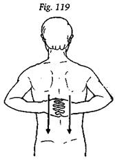 In final, tinand degetele ambelor maini indreptate in jos, frictionati-va rapid spatele, atat partea stanga, cat si cea dreapta, de la rinichi pana la regiunea sacrala (fig. 120). Repetati de trei ori.