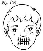 Cariile dentare si pioreea (scurgerea de puroi). Aceasta terapie preventiva incepe cu aplicarea presiunii shiatsu pe gingii, in partea anterioara. Pe gingia superioara, exista doua siruri de puncte, situate intre nas si buza de sus. Pornind din centru spre colturile gurii, apasati simultan punctele din stanga si din dreapta (fig. 127 si 128). Degetele trebuie sa atinga usor fiecare punct de pe gingie. Fiecare presiune va dura trei secunde. Repetati de trei ori. Efectuati acelasi tratament asupra punctelor situate pe gingia inferioara.