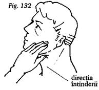Lasand mainile in aceeasi pozitie, intindeti gatul oblic in sus (fig. 132). Ramaneti astfel timp de zece secunde. Repetati de trei ori.