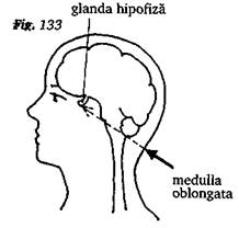 Tratarea eficienta a zonei medulla oblongata mentine echilibrul hormonal al organismului si influenteaza functionarea glandei hipofize (fig. 133). Presiunea shiatsu se exercita cu degetele mijlocii suprapuse. Fiecare apasare va dura cinci secunde. Repetati de trei ori. Apoi, in aceeasi regiune, efectuati o manevra vibratorie. Este nevoie de o singura aplicatie, care va dura zece secunde.