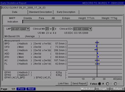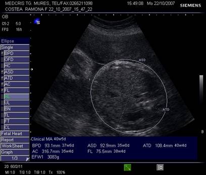 Fig. nr.202. Raport obstetrical dupa terminarea biometriei fetale , cu estimarea varstei gestationale si a greutatii fetale