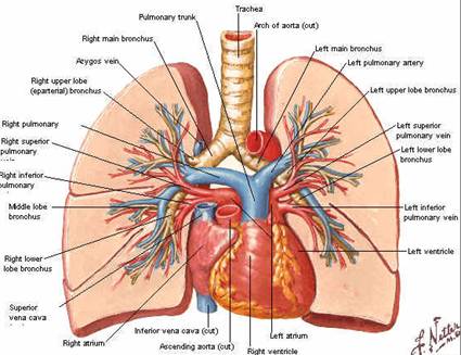 Circulatia pulmonara este cuplata cu cea sistemica, sangele din ventriculul drept fiind propulsat prin artera pulmonara spre plamani, unde are loc oxigenarea, dupa care revine prin venele pulmonare prin atriul stang.