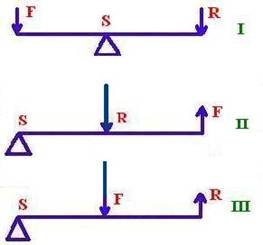 Clasificarea parghiilor se face in functie de pozitiile celor trei puncte de aplicatie F, R si S (Fig. 1):