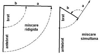 Sunt intalnite in miscarea membrelor. De exemplu, datorita faptului ca membrele superioare sunt compuse din doua segmente, viteza liniara a mainii este mai mare cand antebratul descrie un unghi fata de brat si concomitent bratul descrie un unghi fata de trunchi. Din figura 6 se observa cum aducerea mainii la nivelul umarului se face intr-un timp mai scurt, daca ambele segmente se misca simultan, decat in cazul in care membrul superior se misca rigid