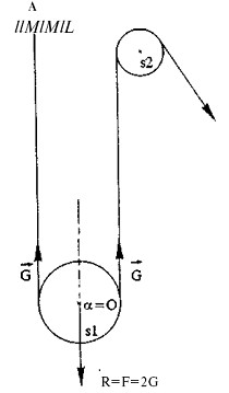 Reactia axului: reactia R a axului O al scripetelui este egala si de sens opus cu rezultanta dintre F si G (fig. 8).