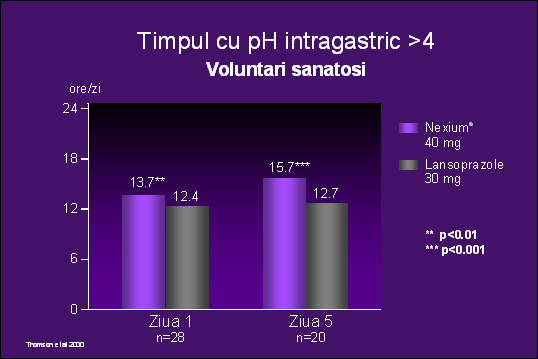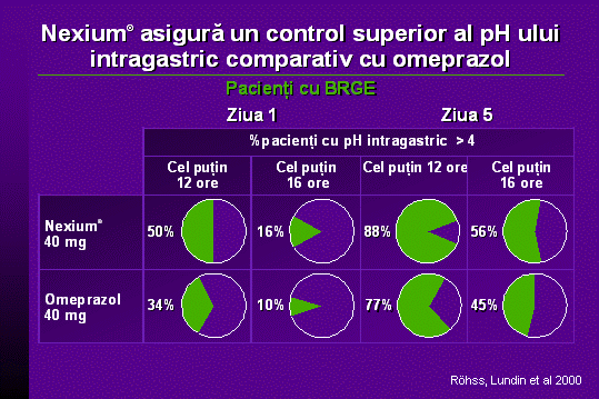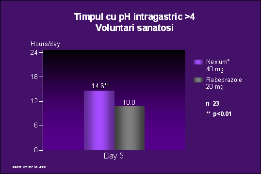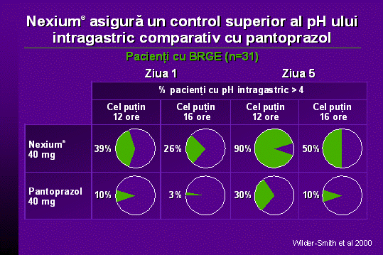 Inca din prima zi Nexium a obtinut un control al secretiei acide superior pantoprazolului,diferenta ramanand semnificativa si in ziua a 5-a.