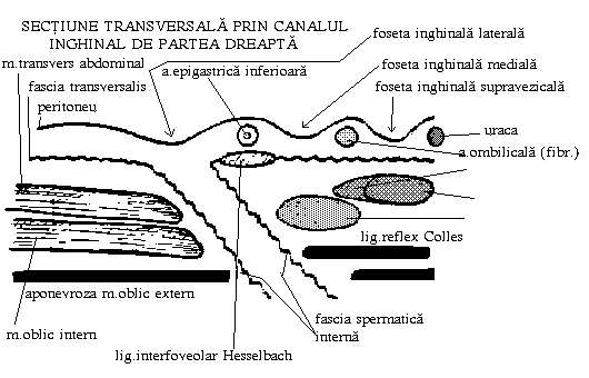 in regiunea inghinala peretele abdominal este traversat de catre funiculul spermatic (la barbat) sau lig.rotund al uterului (la femeie), printr-un traiect intraparietal numit canal inghinal