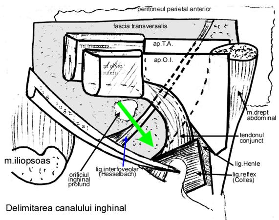 pe aici se produce evaginarea parietala in cursul herniilor inghinale oblice interne