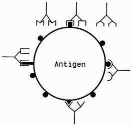 J. F. Bach (1976) defineste antigenele ca fiind molecule care, consecutiv introducerii in organism pe o cale adecvata, induc un raspuns imun materializat prin proliferarea celulelor limfoide si sinteza moleculelor de recunoastere (anticorpi si receptori celulari), cu care se combina in vivo si in vitro.