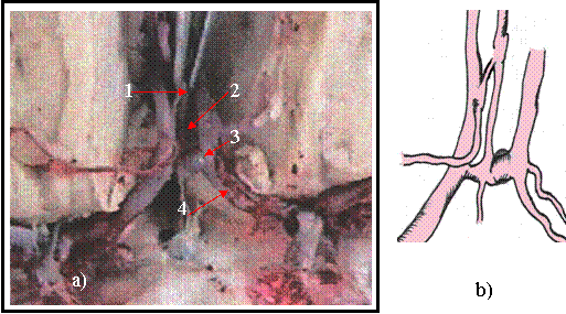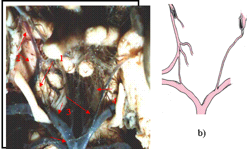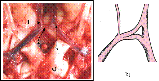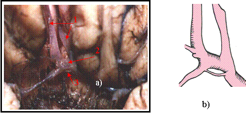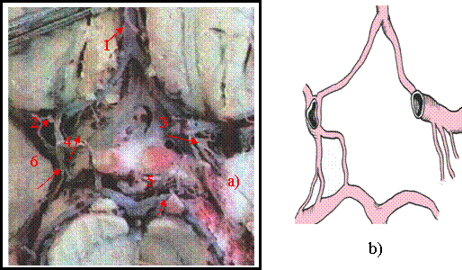 Figura 9.3 a) vasele sectorului posterior al poligonului lui Willis b) prezentare schematica