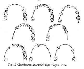 Clasificarea edentatiilor dupa E. Costa, bazata pe criterii topografice, indica sapte posibilitati de edentatie (fig.12).