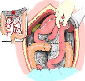 Se creeaza o bresa la baza mezenterului, prin care se trece colonul stang, dupa eliberarea unghiului si eliberarea portiunii sale initiale si se realizeaza o anastomoza colo-colica termino-terminala, cu mobilizarea suficienta a colonului drept.