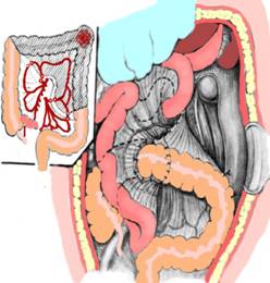 Fig. 12 - Colectomie intermediara: anastomoza colo-colica transmezenterica (7)
