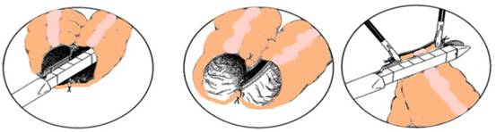 Anestezia generala este obligatorie, la fel ca si introducerea unui cateter vezical si a unei sonde nazogastrice pentru aspiratie.