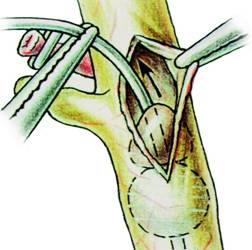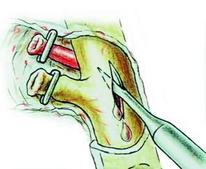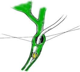 Fig. 7 - Coledocotomie longitudinala cu un bisturiu fin