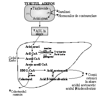 acizilor grasi din tesutul adipos. In ficat cetogeneza este crescuta.