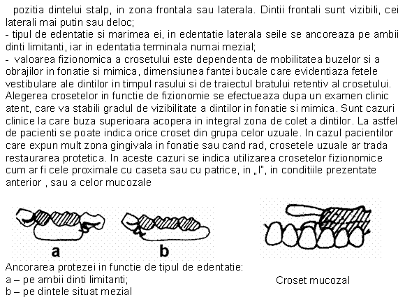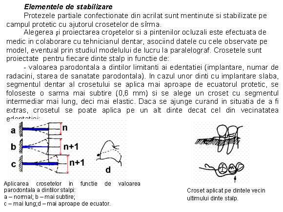 Pentru confectionarea corecta a unei machete este bine sa se execute mai intai crosetele si pintenii ocluzali si dupa aceea sa se monteze dintii artificiali. Procedand astfel, se pot adapta dintii artificiali in raport cu crestele alveolare, cu dintii restanti si cu crosetele situate in pozitia lor definitiva. Pentru ca acestea sa nu creeze dificultati in montarea dintilor, este bine ca segmentele lor retentive sa nu fie situate pe mijlocul crestelor alveolare, ci pe versantele vestibulare si orale, situate la 1 mm de model pentru a fi inclavate in acrilat. Cand se confectioneaza crosetele dupa proba machetei in cavitatea bucala, exista posibilitatea ca dintii artificiali sa fie mobilizati si sa nu-si gaseasca locul pe care se aflau la proba si sa necesite o noua montare.