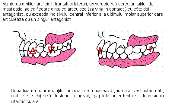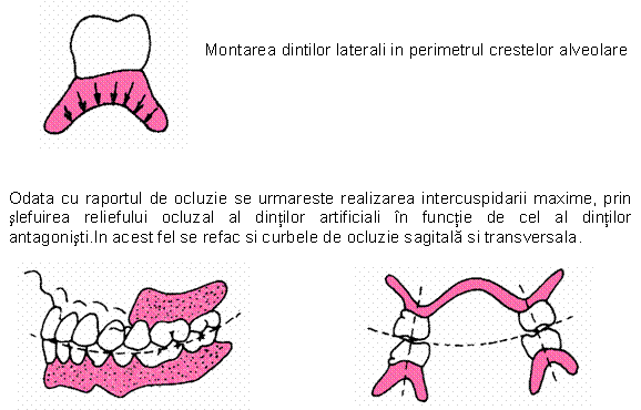 pozitionarea dintilor laterali este realizata dupa regulile generale de montare: se pozitioneaza pe mijlocul crestei alveolare cu inclinarile caracteristice si in raport cu dintii antagonisti, urmarindu-se realizarea unitatilor de masticatie si a curbelor de ocluzie.