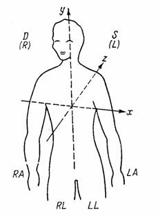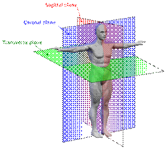 Fig. 2 Pozitia planelor anatomice (frontal - xy, sagital - zy si transversal - xz)