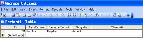 Fig. 31 Popularea grid - ului cu datele unui pacient nou